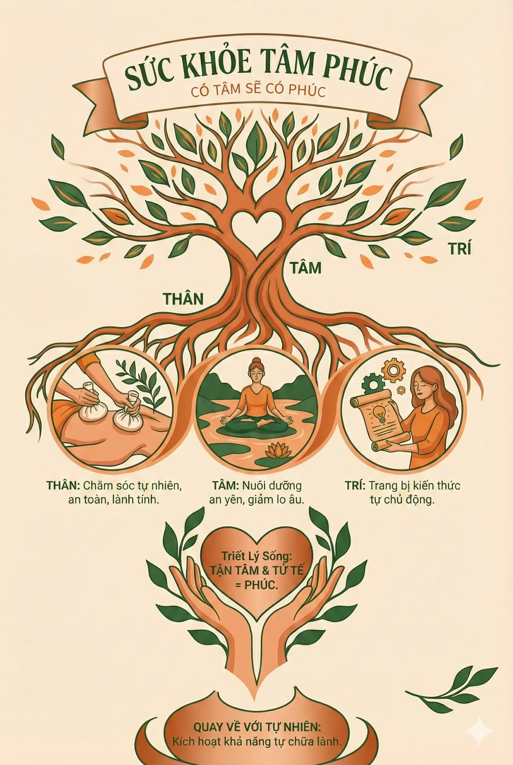 Thân: Được chăm sóc bằng các liệu pháp tự nhiên, an toàn và lành tính.